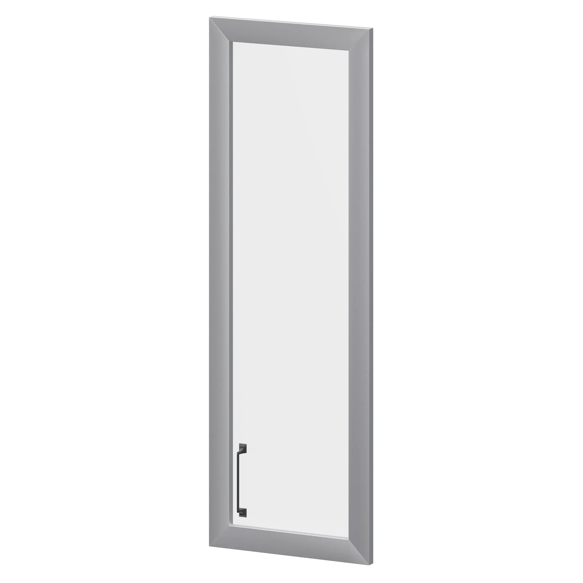 Матовое стекло в алюминиевой раме. Фурнитура в комплекте. Ручка в цвет изделия.